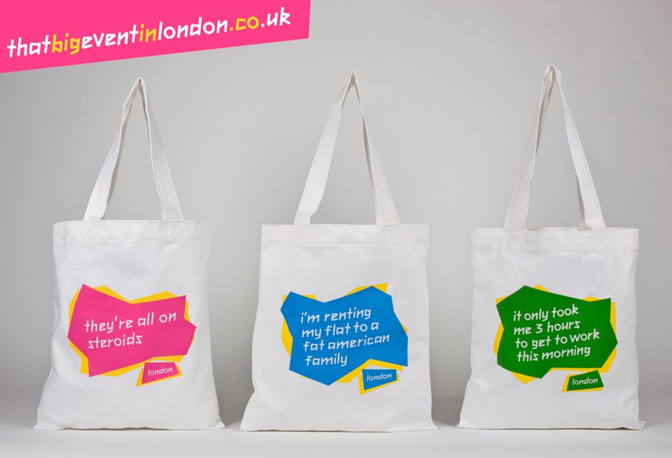 We were however impressed by these “Anti-Olympic” bags and t-shirts which are doing the rounds. Especially the “It Only Took Me 3 Hours To Get To Work This Morning” – let’s just hope it doesn’t Boris or we might not be so impressed. Available for just £15.