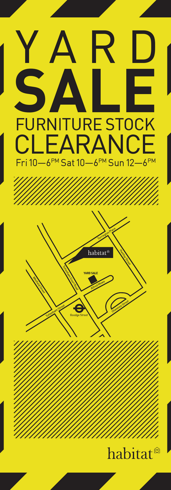 High street household kit-er-outers Habitat are holding a Yard sale with up to 70% reductions off clearance furniture, accessories and outdoor stuff, yes stuff! The sale is over today, Saturday and Sunday and if these final reductions get you all hot and bothered then like us you will make it down to their “Yard” which is located behind the Tottenham Court branch at some point.