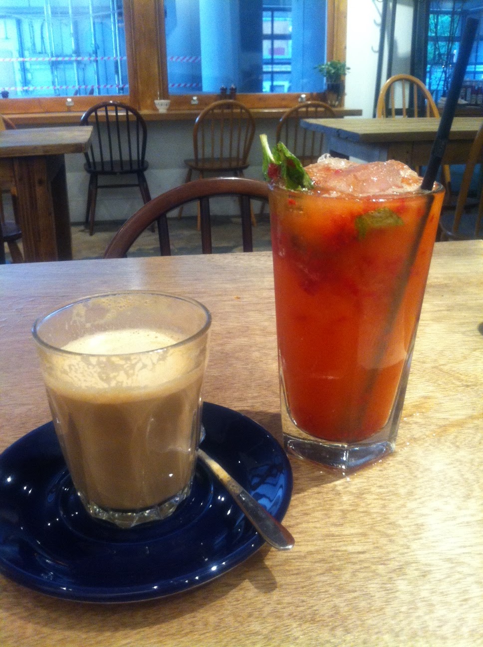 Almond bircher muesli with baked apple was another great dish and also super filling – so filling we couldn’t finish it. A Latte was served strong and hot whilst the fresh juices were particularly nice with an Orange, Raspberry and Mint concoction scoring high on our juice-o-meter.