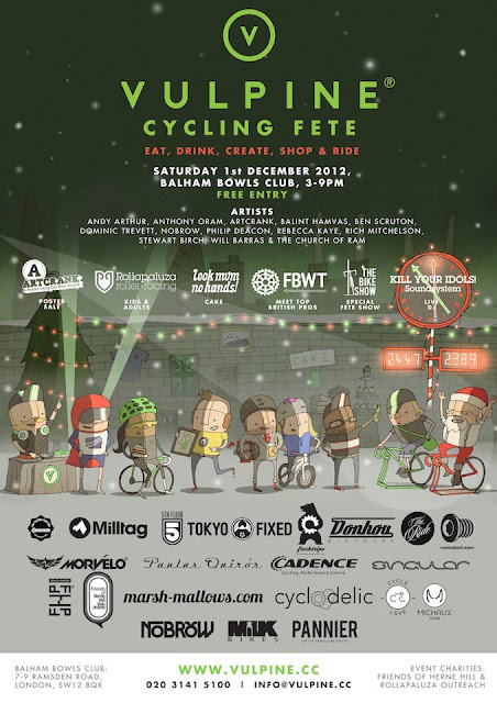 Vulpine’s philosophy is clear, that cycling is no place for cliques or snobbery and that bikes should be fun for all, so expect something for everyone. Artcrank will be exhibiting bicycle related works from 26 artists, while Rollapaluza while allow you to virtually compete against cycling legends like Chris Hoy and Victoria Pendleton on their spinning bikes.
